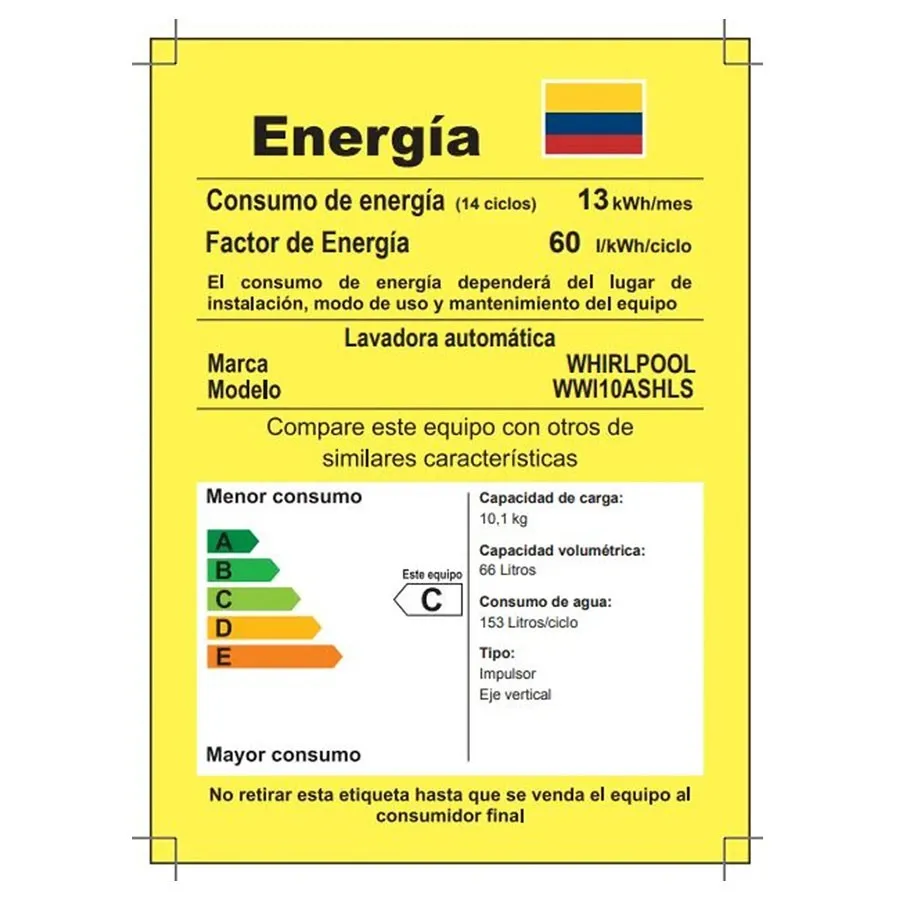 LAVADORA WHIRLPOOL 10,1 Kg WWI10ASHLS